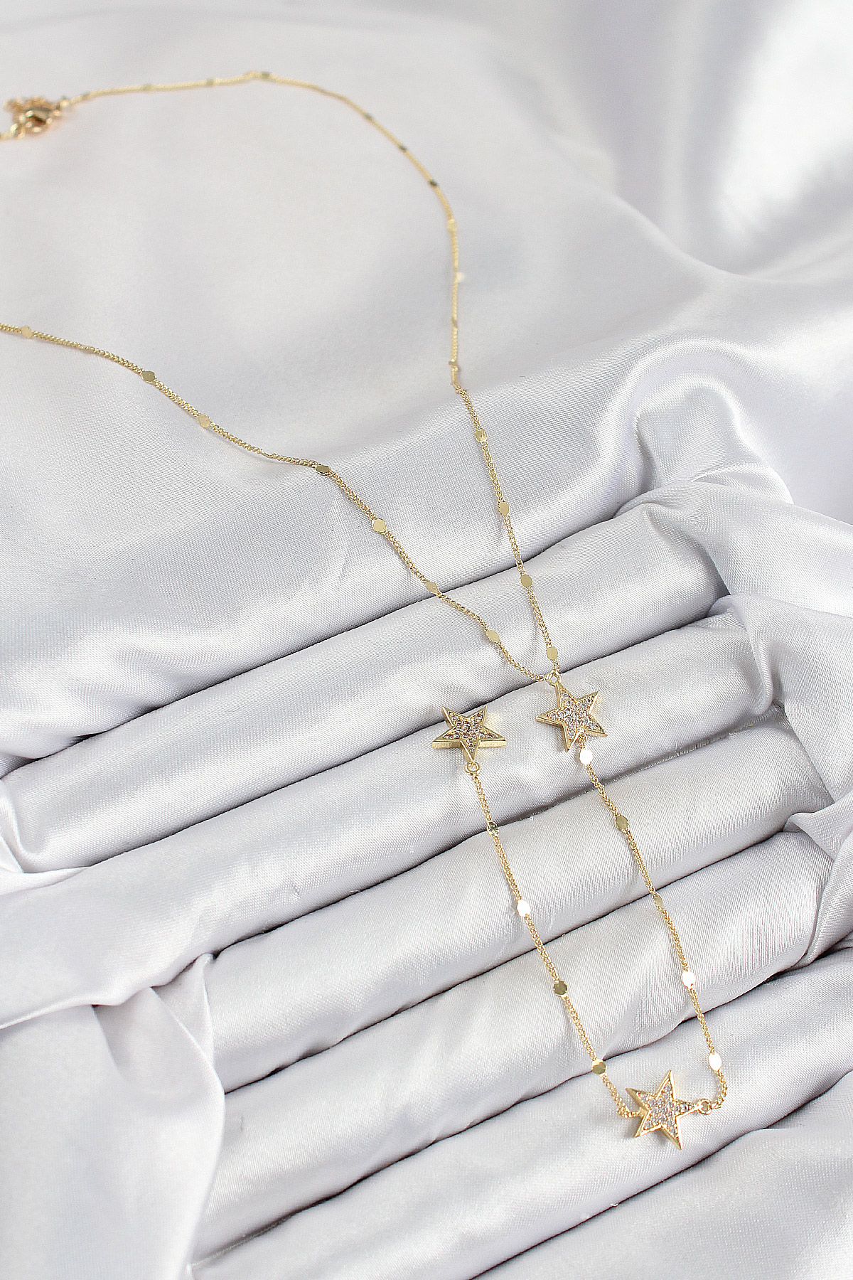Pirinç Zirkon Taşlı Yıldız Model Gold Renk Y Kolye