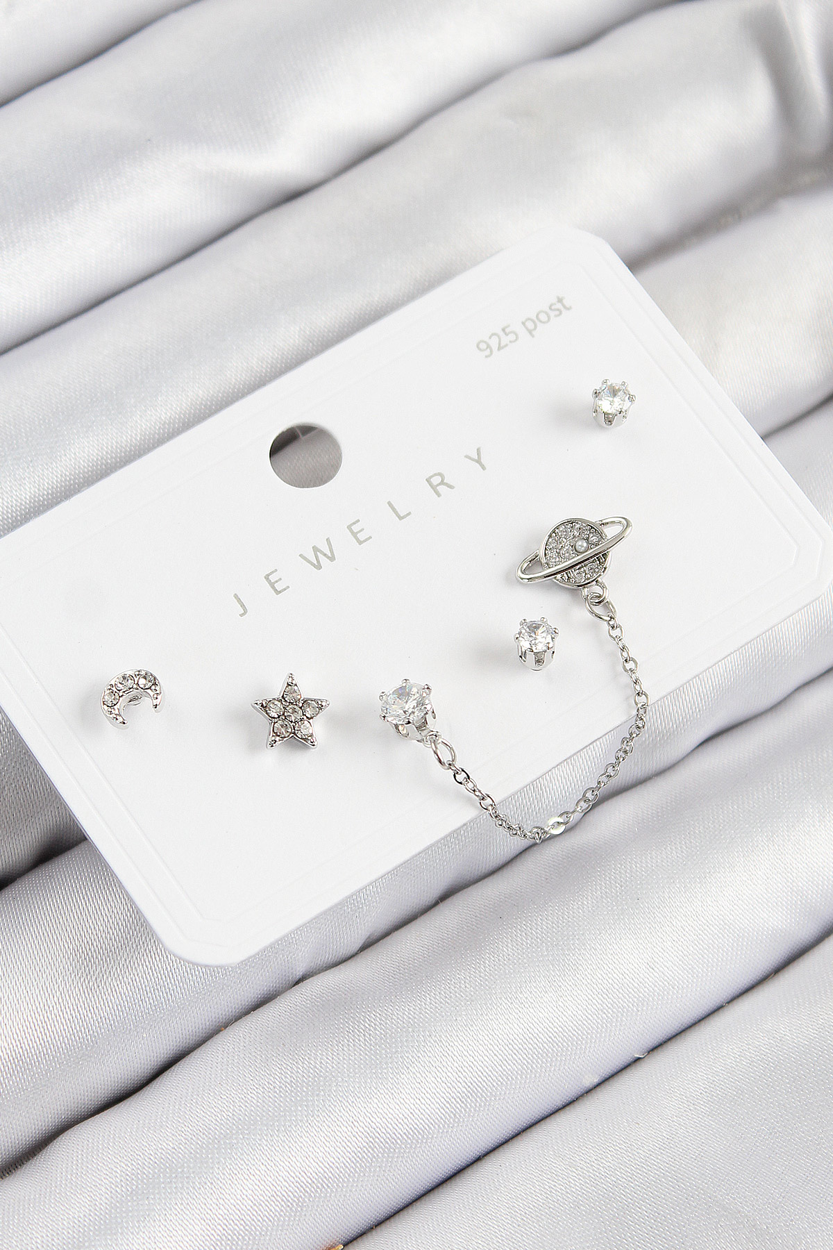 Pirinç Zirkon Taşlı Yıldız Ve Gezegen Model Gümüş Renk 925 Ayar Gümüş Çivi Kadın Küpe Set