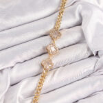 Pirinç Zirkon Taşlı Yonca Model Gold Renk Kadın Bileklik