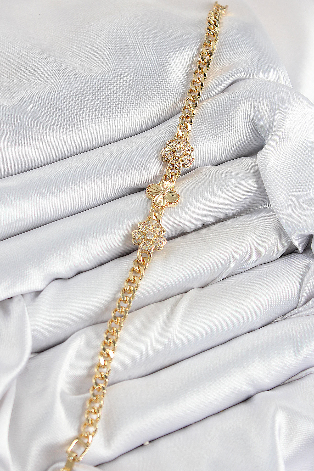 Pirinç Zirkon Taşlı Yonca Model Gold Renk Kadın Bileklik