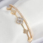 Pirinç Zirkon Taşlı Yonca Model Gold Renk Kadın Bileklik