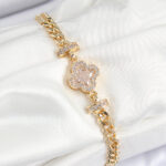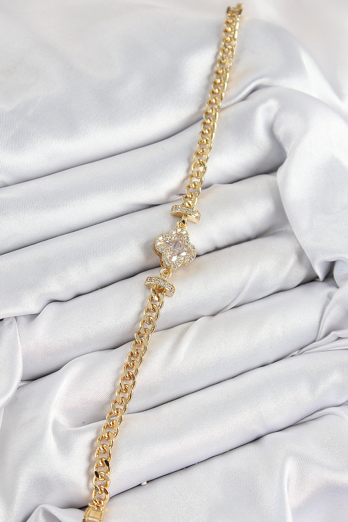 Pirinç Zirkon Taşlı Yonca Model Gold Renk Kadın Bileklik