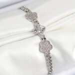 Pirinç Zirkon Taşlı Yonca Model Gümüş Renk Kadın Bileklik