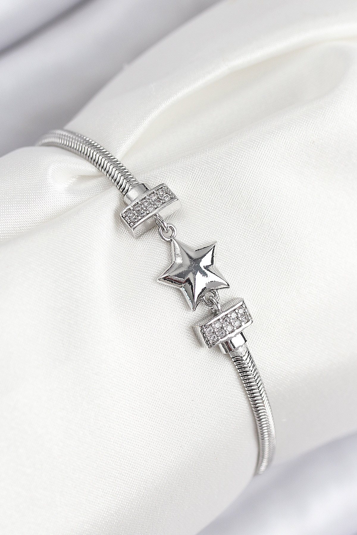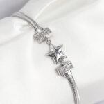 Pirinç Zirkon Taşlı Yonca Model Gümüş Renk Kadın Bileklik