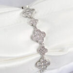 Pirinç Zirkon Taşlı Yonca Model Gümüş Renk VIP Seri Kadın Bileklik