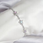 Renkli Yıldız Model Zirkon Taşlı Gümüş Renk Pirinç Su Yolu Kadın Bileklik