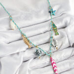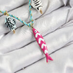 Seramik Motifli Pembe Balık Figürlü Model Mavi İp Kadın Kolye