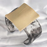 Siyah Mermer Desen Akrilik Plastik Gold Kare Plaka Model Vintage Kadın Bilezik