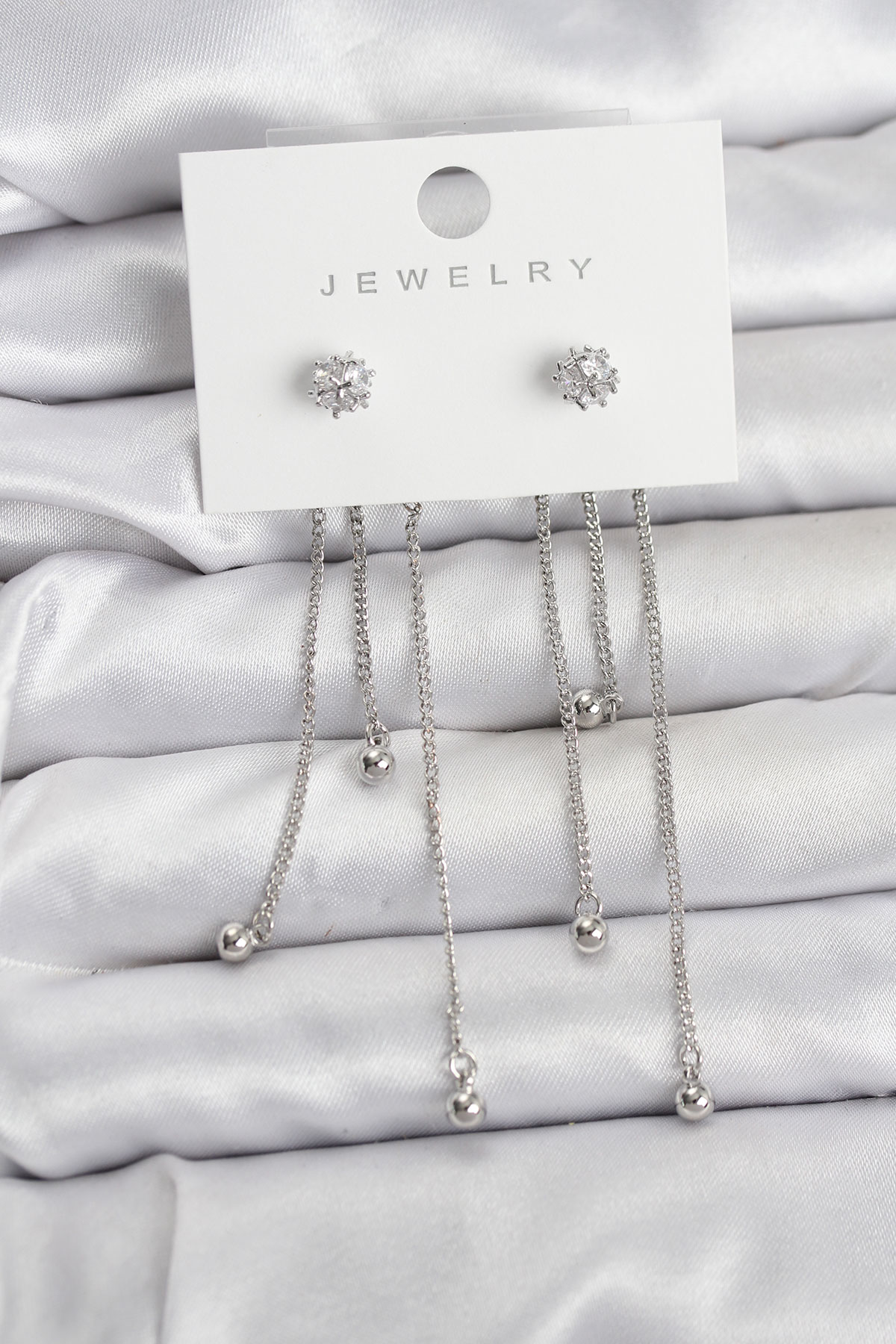 Topçuk Model Gümüş Renk Pirinç Sallantılı Kadın Küpe Seti
