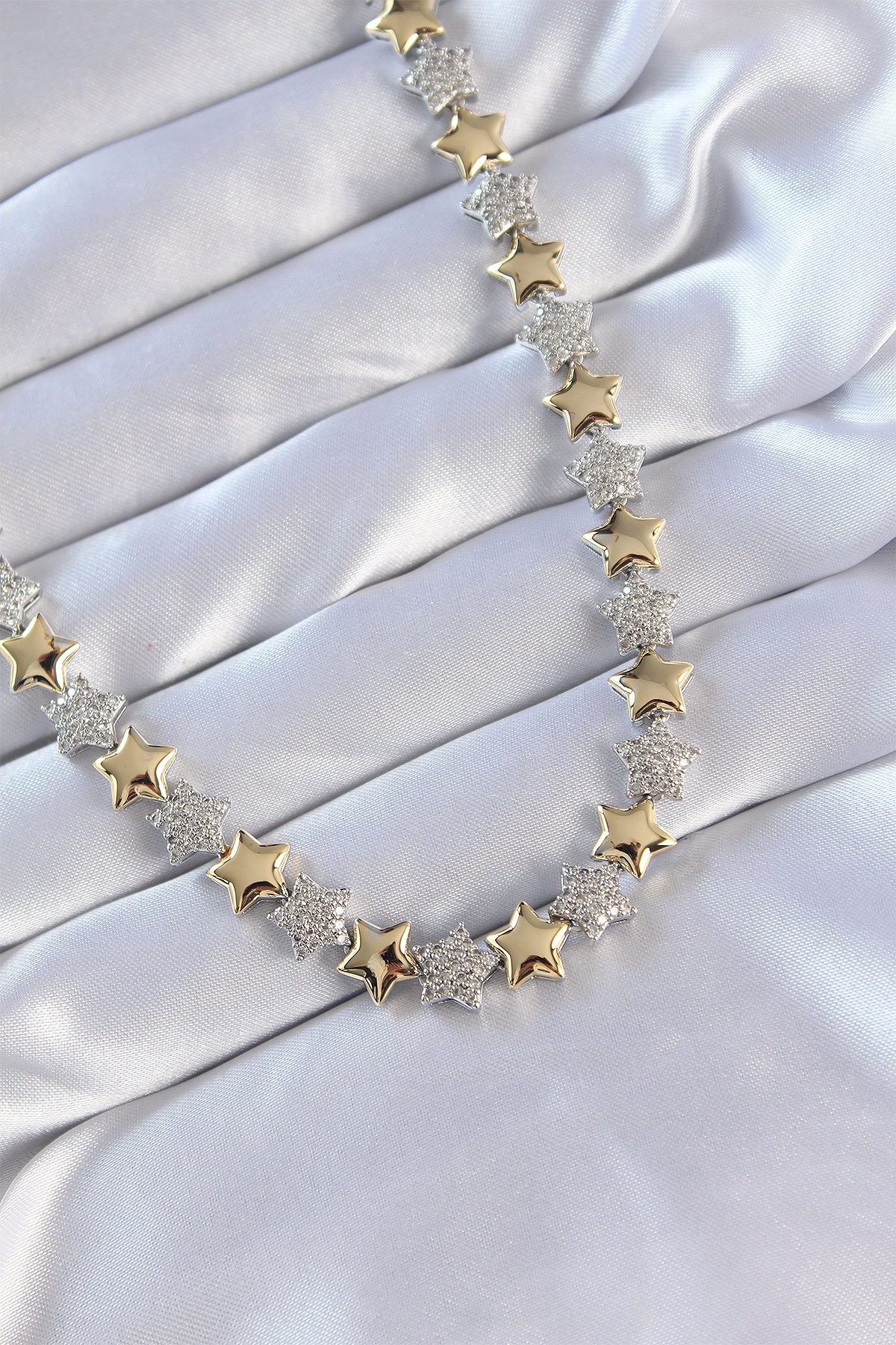 Vip Seri Pirinç Çift Renk Zirkon Taşlı Yıldız Tasarımlı Kolye