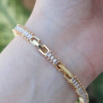 Vip Seri Pirinç Pembe Zirkon Taşlı Gold Renk Baget Model Bileklik