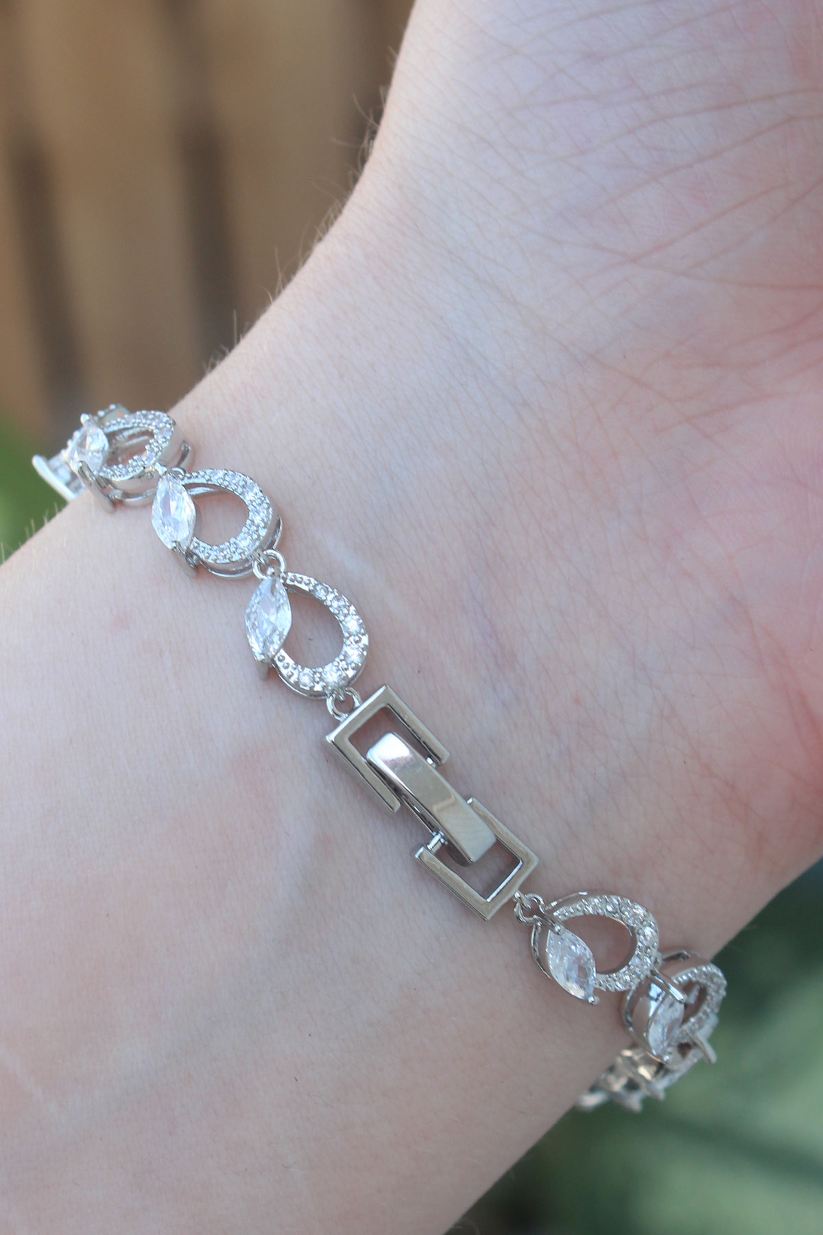 Vip Seri Pirinç Zirkon Taşlı Gümüş Renk Arpa Model Bileklik