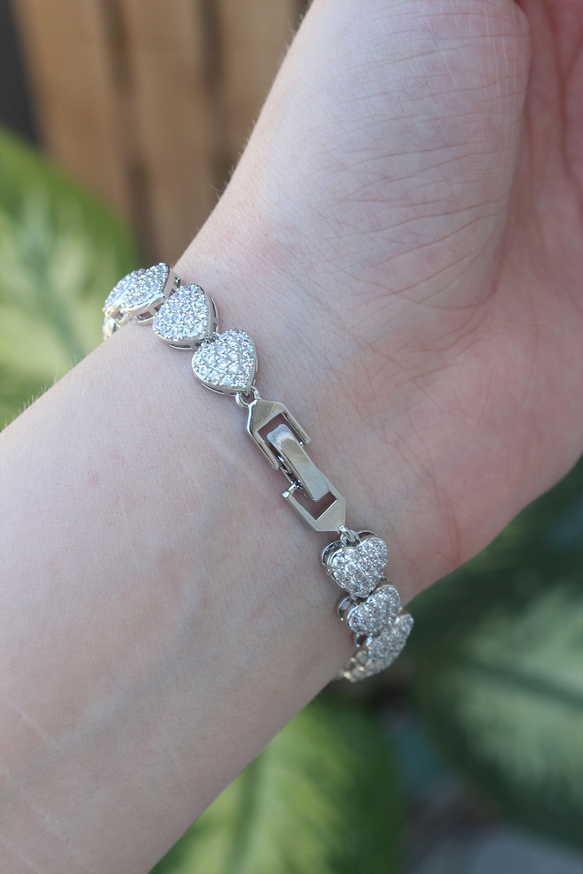 Vip Seri Pirinç Zirkon Taşlı Gümüş Renk Kalp Model Bileklik