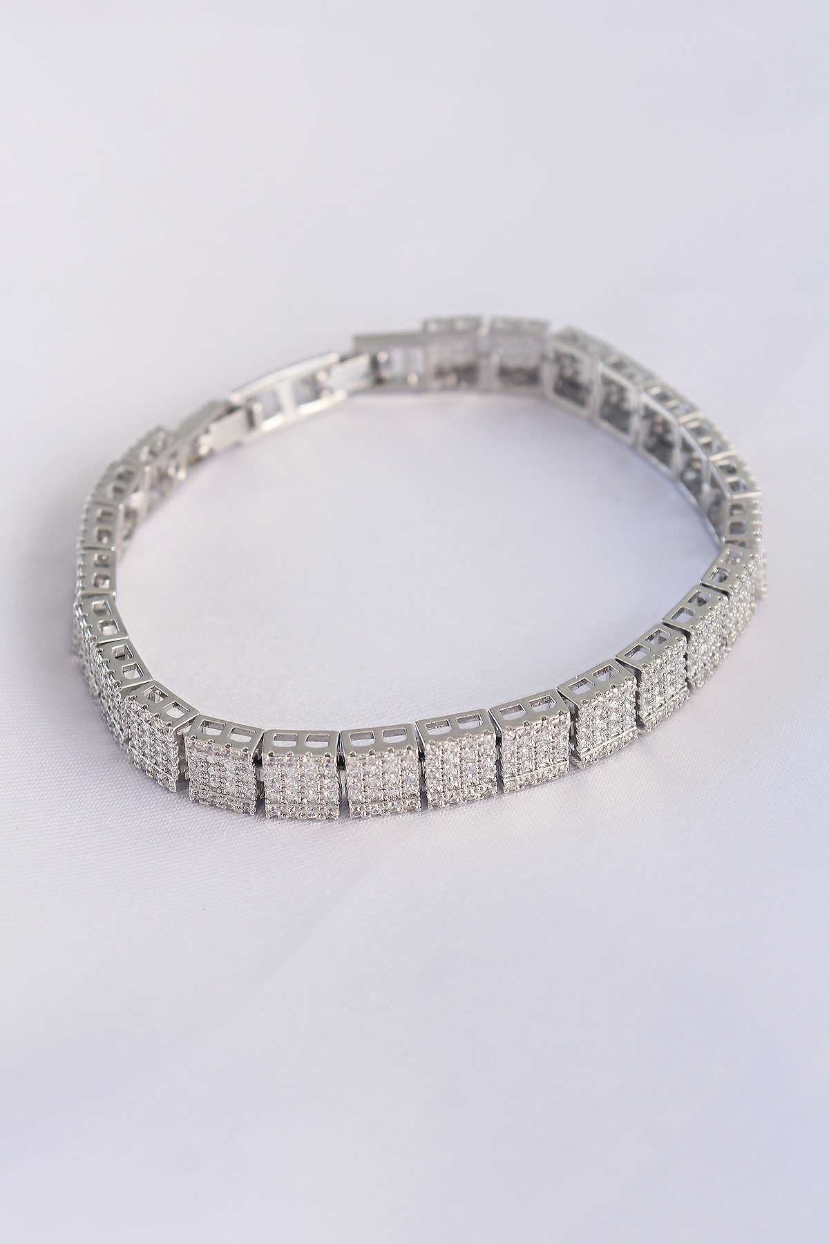 Vip Seri Pirinç Zirkon Taşlı Gümüş Renk Kare Su Yolu Model Bileklik