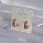 XUPİNG Rose Renk Zirkon Taşlı İşlemeli Halka Küpe